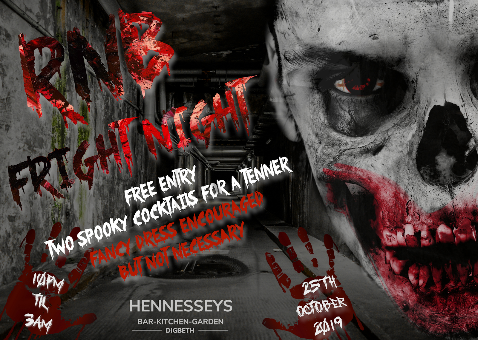 Boodamunk presents R&B Fright Night at Hennesseys. Ultimate 90s R&B from 10pm to 3am with sacres and chills throughout the night.